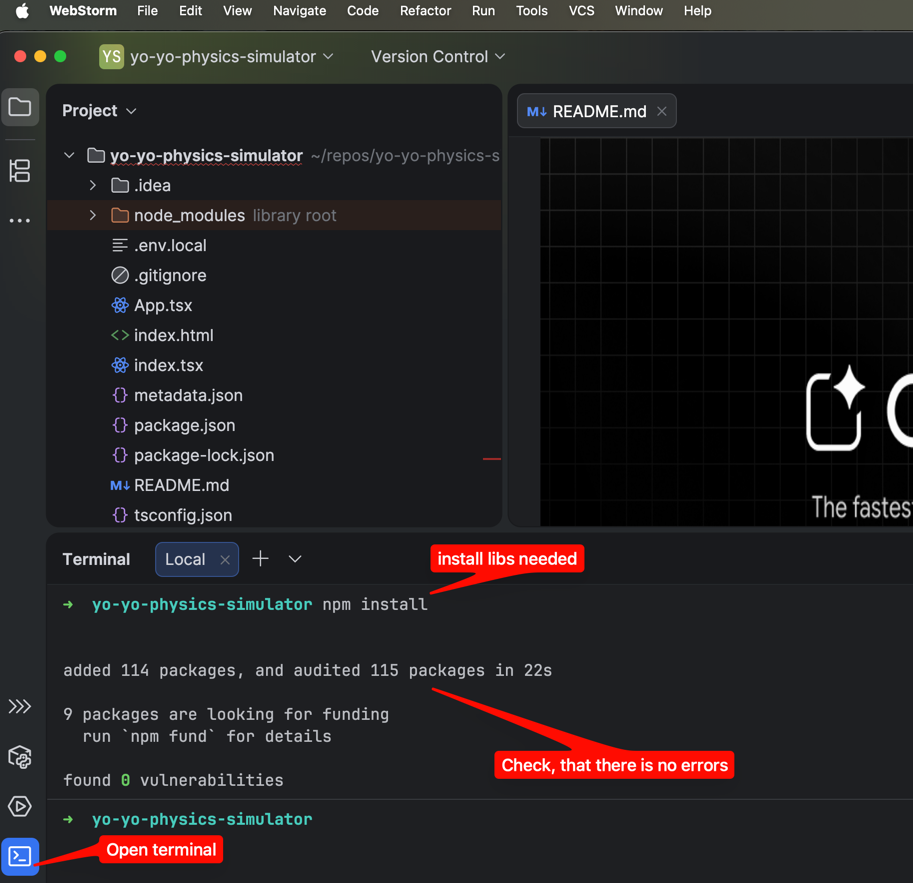 6. Install WebStorm and open your project