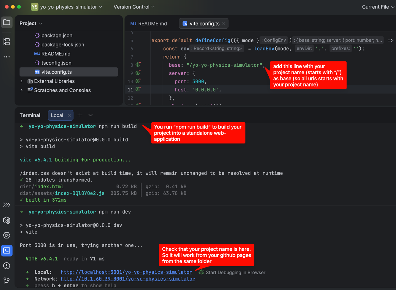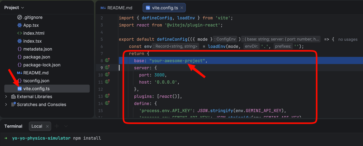 Fix: Fix vite.config.ts, run npm run build, and repeat Step 8 to copy and push again.