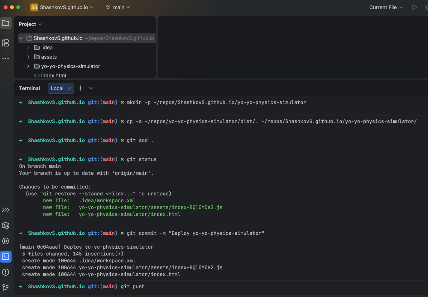 We will use the terminal to move the built site (dist) to the GitHub folder.